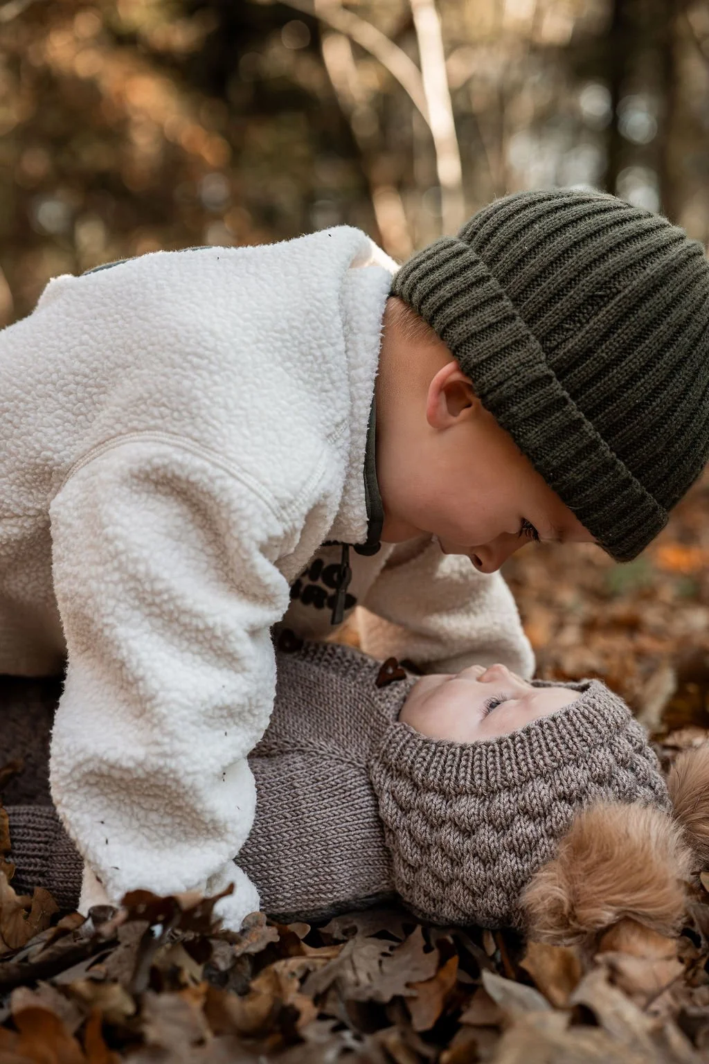 Hvis den mindste finder en spændende pind i skovbunden, bruger vi den i billederne. Hvis de har brug for en pause og et kram, tager vi det. Jeg har masser af tålmodighed. Der er ingen forventning om, at de skal makke ret.